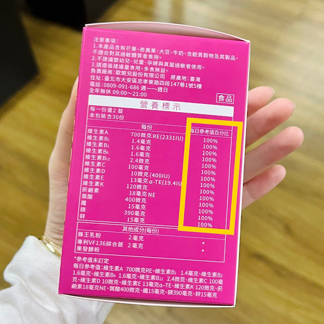 (包裝上一排100%的營養標示!!)